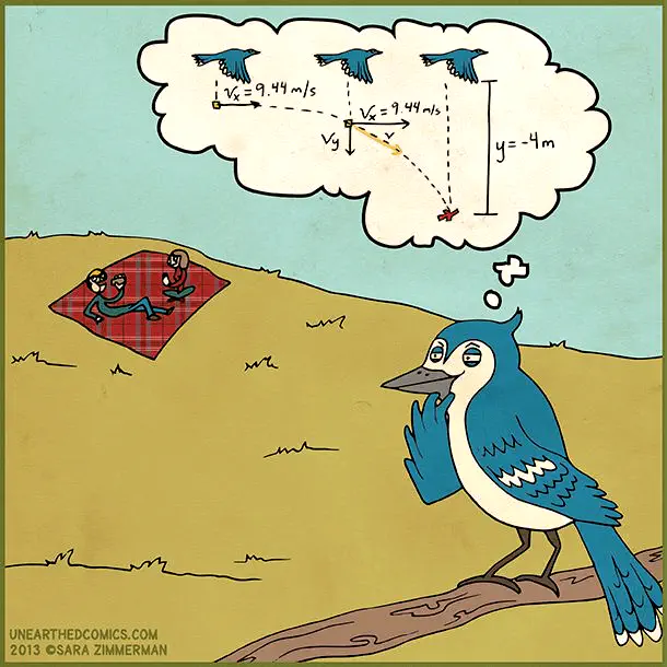 - Un inocente picnic bajo un cielo traicionero: calcula a qué distancia cae el “recado” que te lanza un pájaro con muy mala leche.